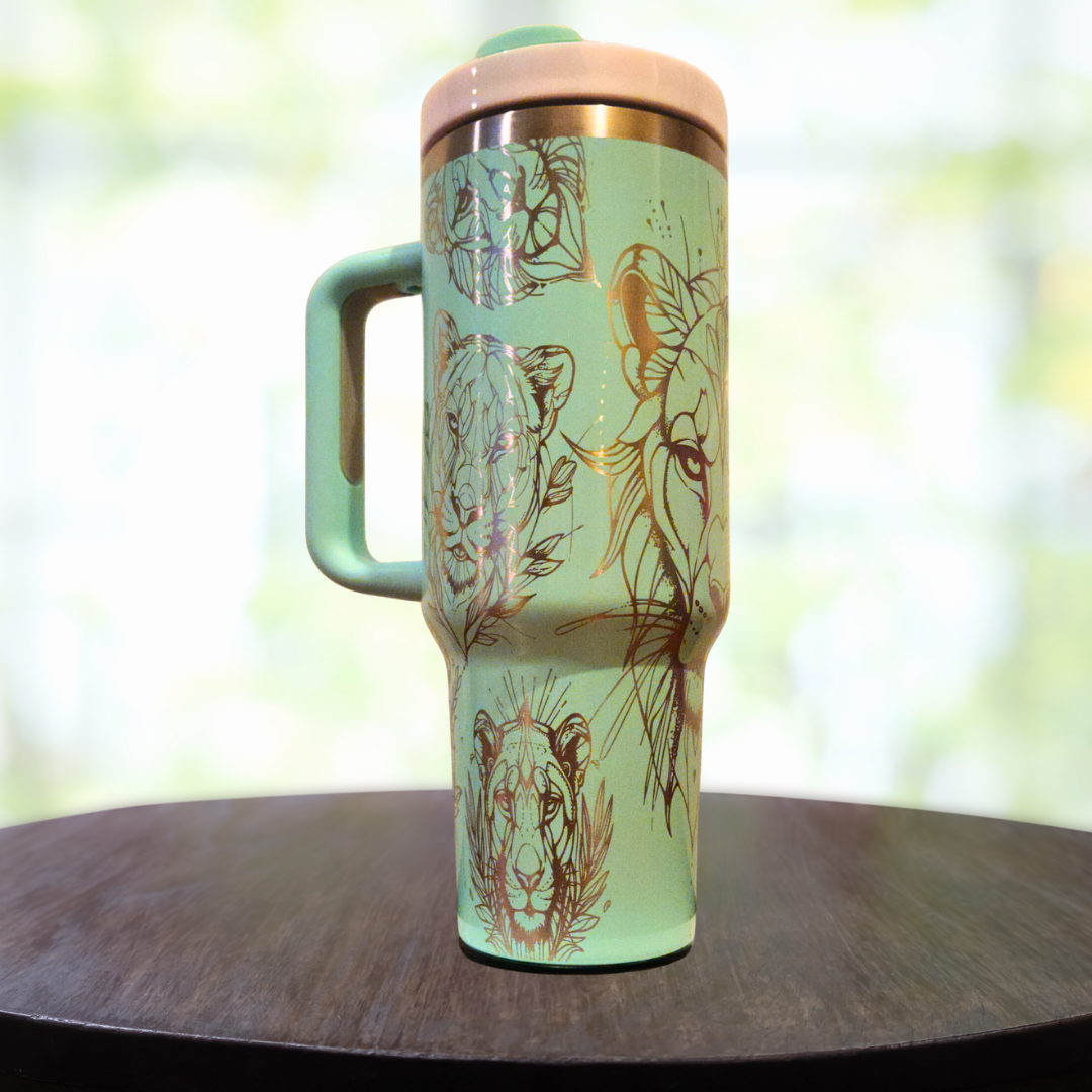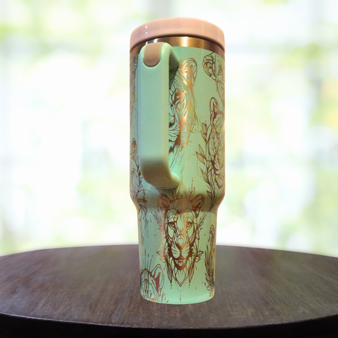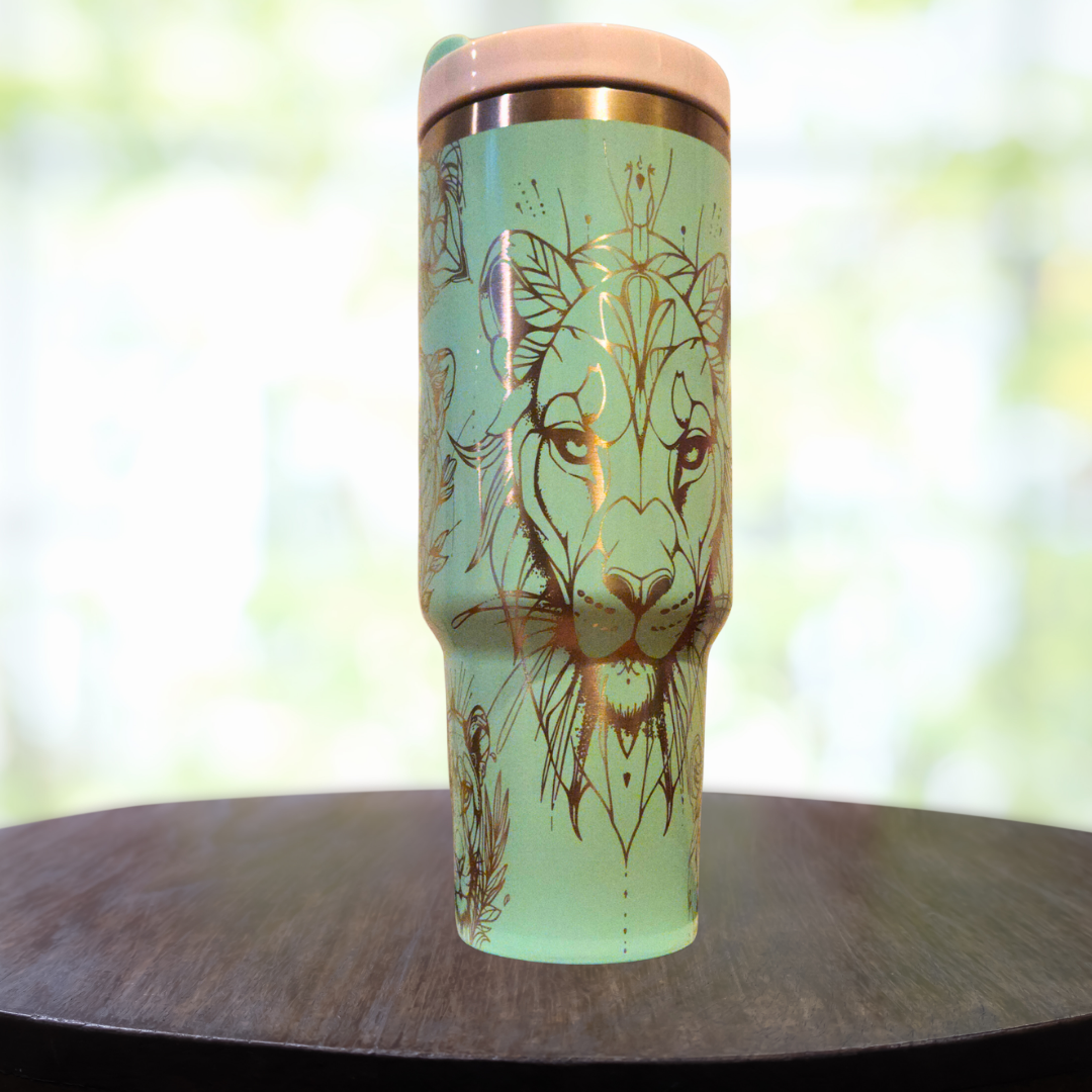 Elevate your hydration game with the 40oz Lion Tumbler and embrace the wild side of life.