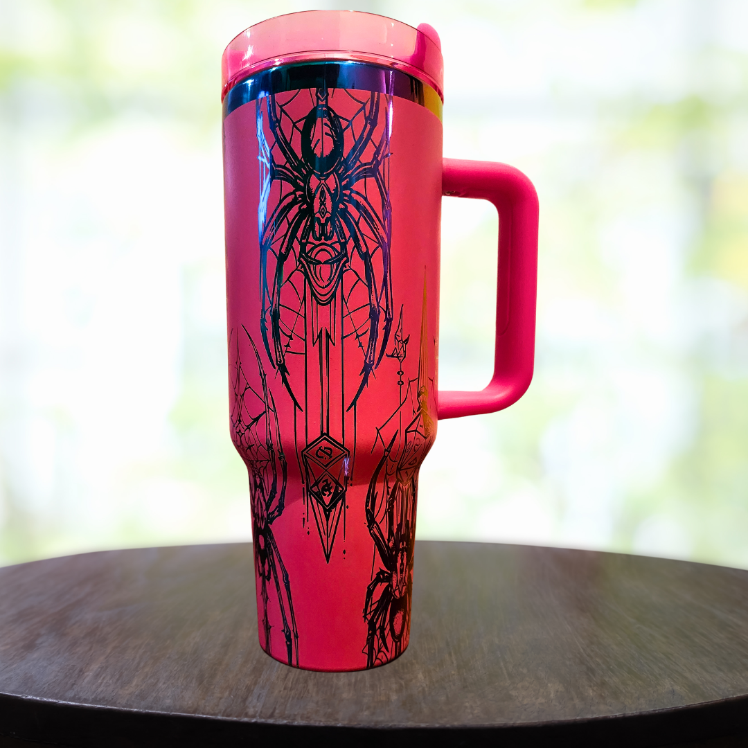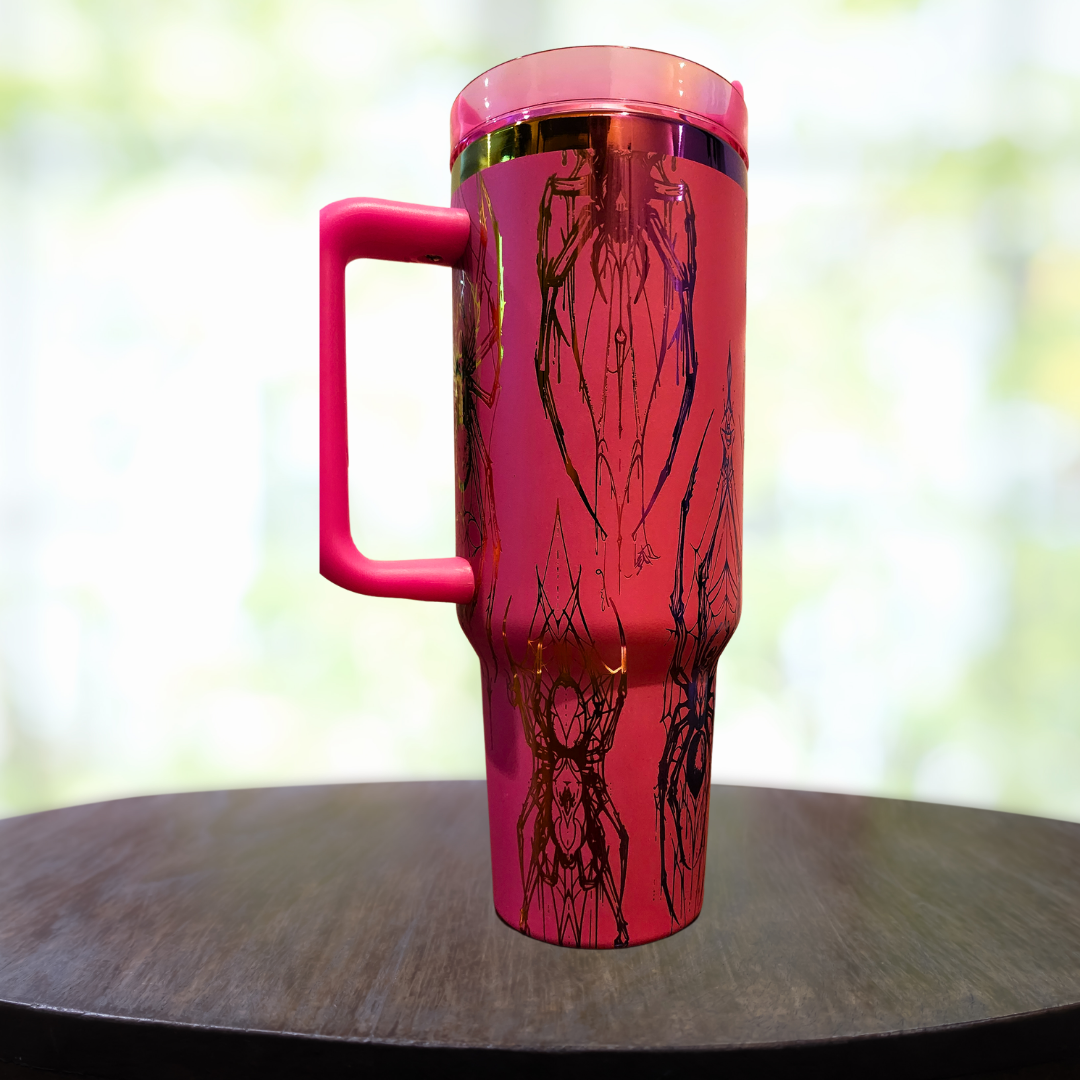 Introducing the 40oz Spider Tumbler, designed for those who embrace a touch of creepiness in their daily routine. This unique tumbler is perfect for Halloween enthusiasts or anyone looking to add a bit of edge to their day.