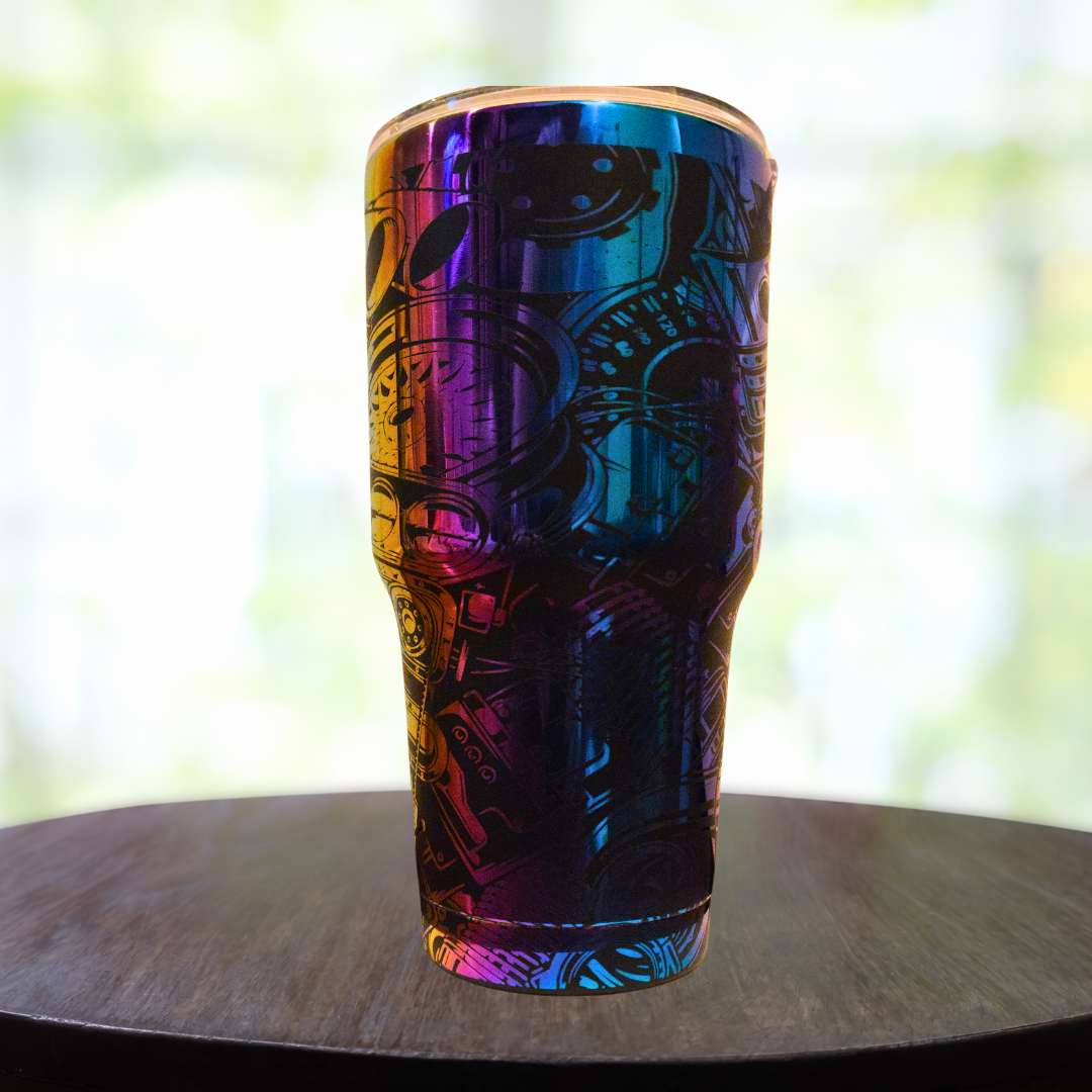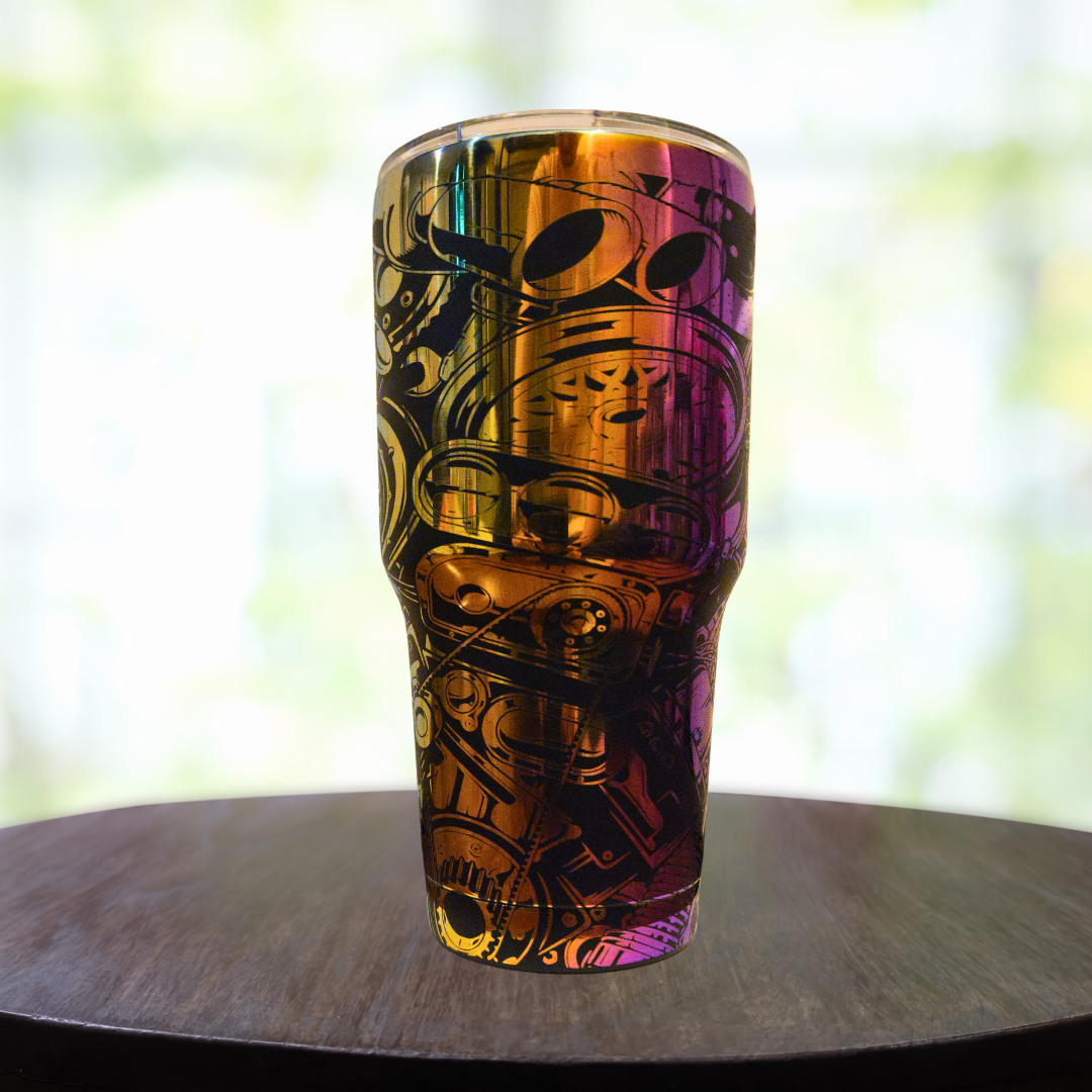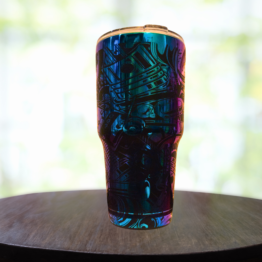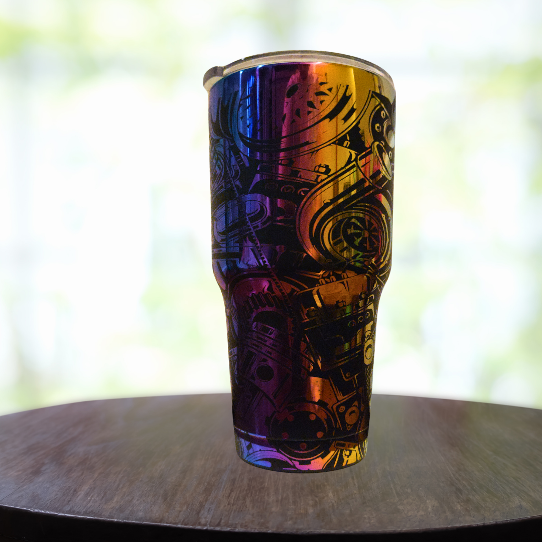 Introducing the 30oz Rainbow Engine Engraved Tumbler, a must-have for automotive enthusiasts. This tumbler features a stunning rainbow finish that adds a vibrant touch to your daily routine.