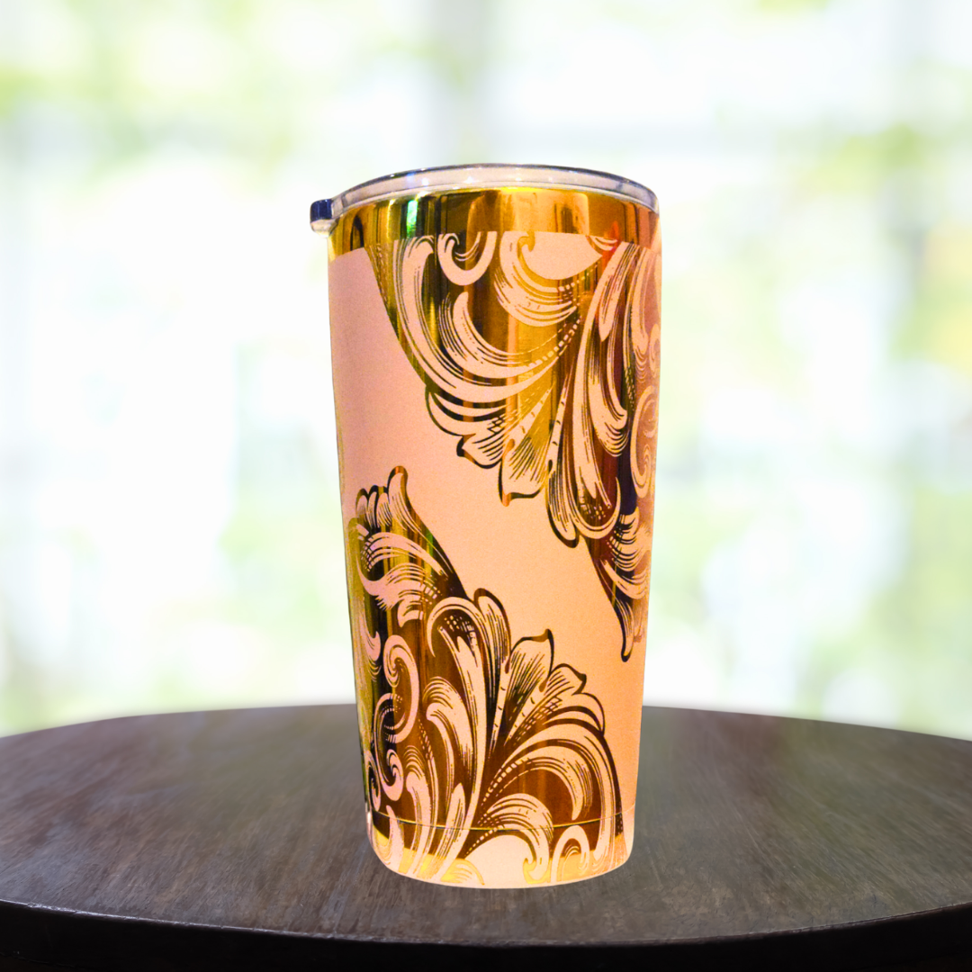 Crafted with an intricate filigree design, the Light Pink Filigree tumbler captures attention while keeping your beverages at the perfect temperature. Whether you're at the office or on the go, this tumbler is the ideal companion for those who appreciate beauty in everyday essentials.