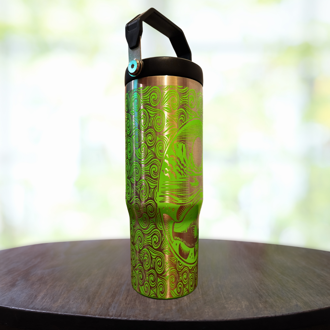 Stay refreshed and stylish with the 30oz Swing Handle Fish Tumbler, your go-to choice for hydration on the go.
