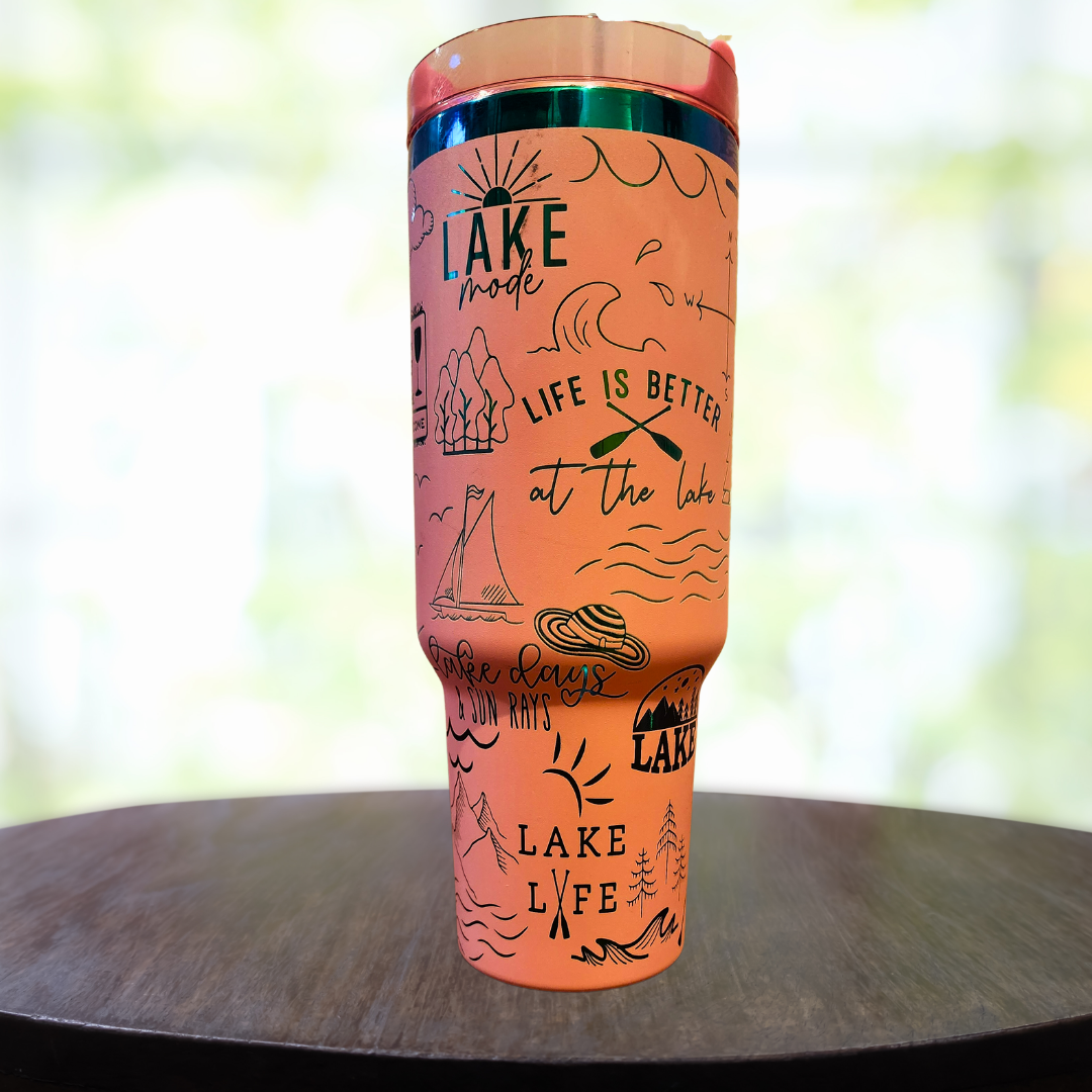 Crafted with high-quality materials, it features a durable design that withstands outdoor adventures. The spacious 40oz capacity ensures you stay hydrated during long days at the lake. Enjoy your drinks in style while embracing the serene vibes of lake life.