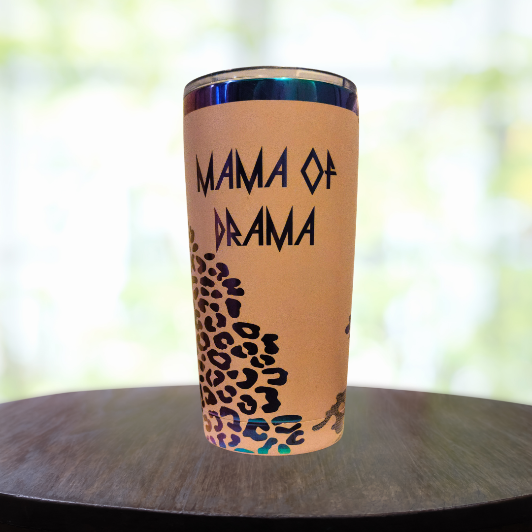 Embrace your role with elegance and practicality with the 20oz Rainbow Mama of Drama Tumbler.