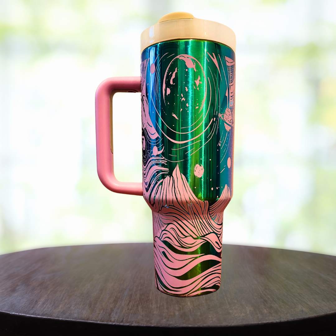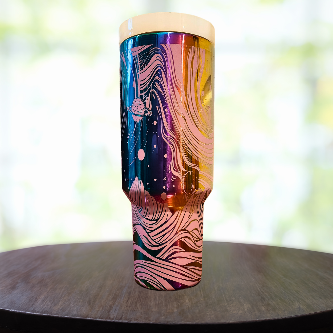 Experience the perfect blend of functionality and style with the Space 40oz tumbler, making every sip feel like a journey through the stars.