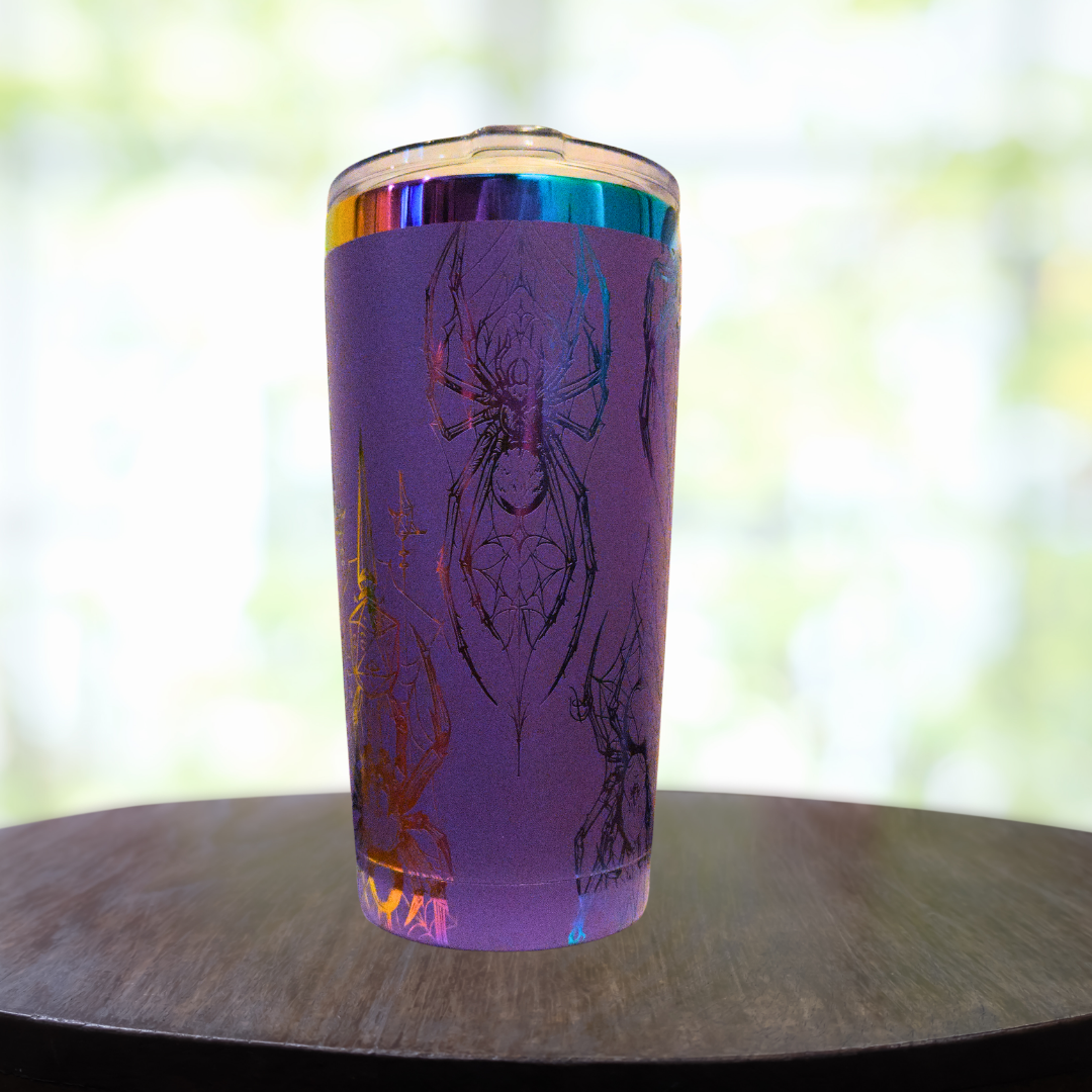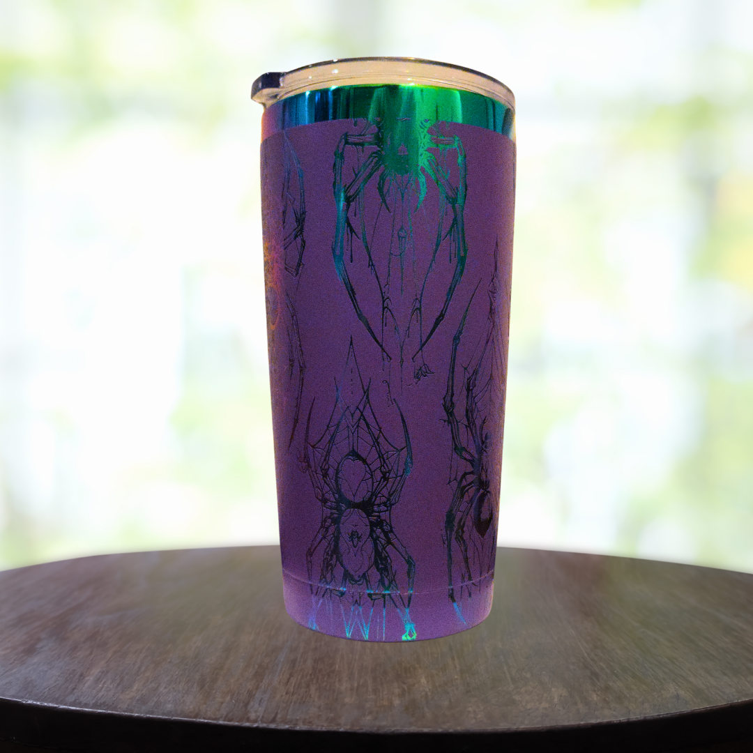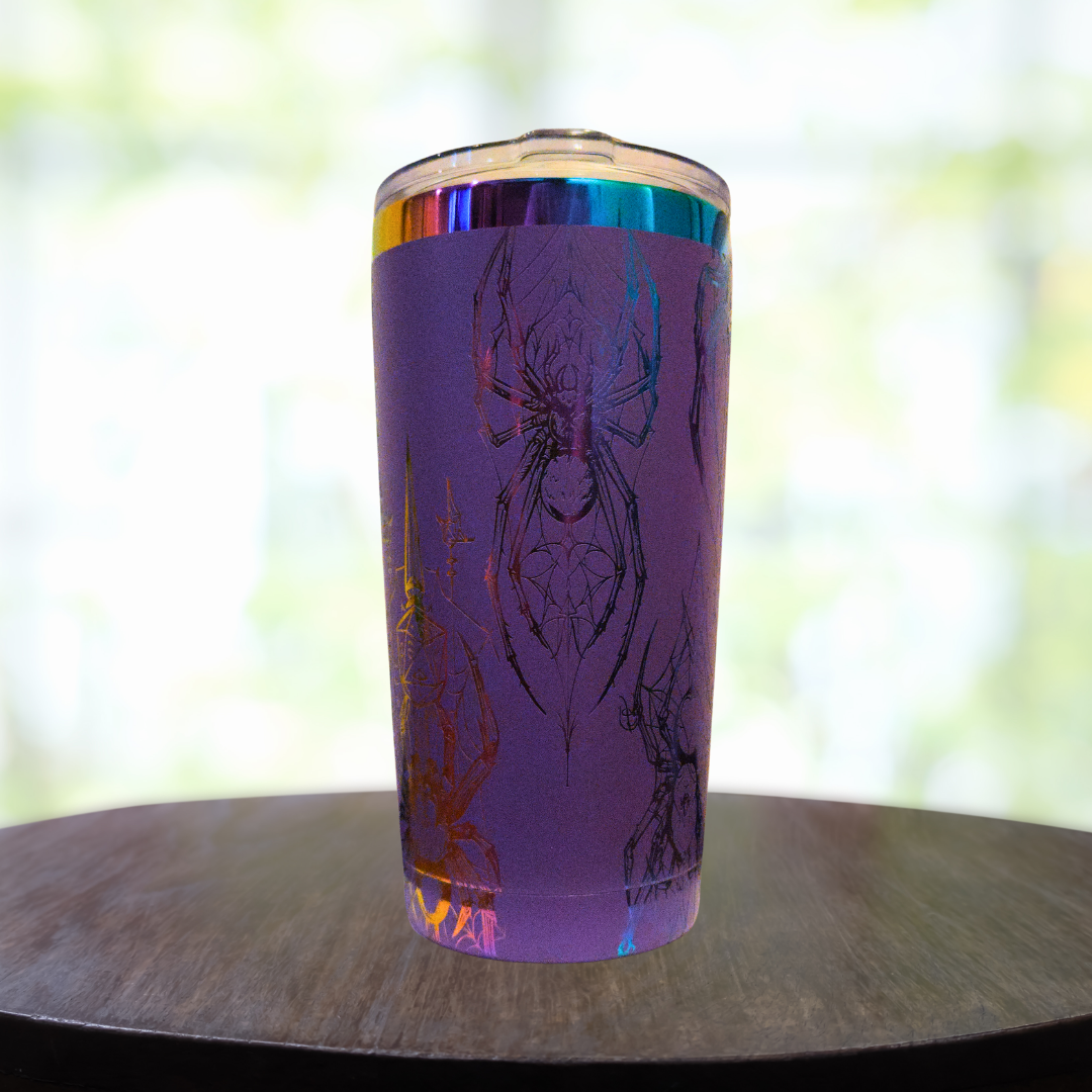 Crafted to keep your beverages at the ideal temperature, this tumbler not only serves its purpose but also showcases a beautifully engraved spider design. Sip in style and let your personality shine with every drink!