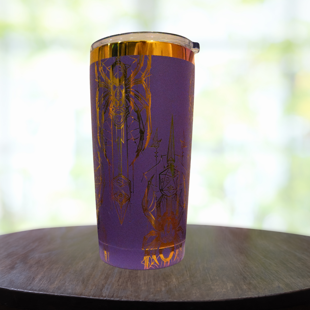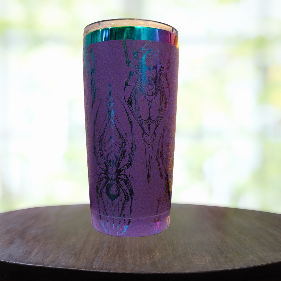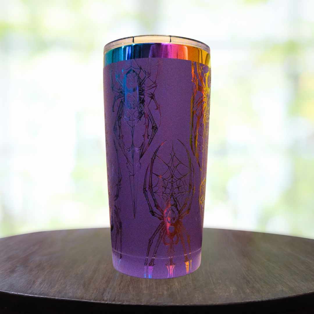 Crafted to keep your beverages at the ideal temperature, this tumbler not only serves its purpose but also showcases a beautifully engraved spider design. Sip in style and let your personality shine with every drink!