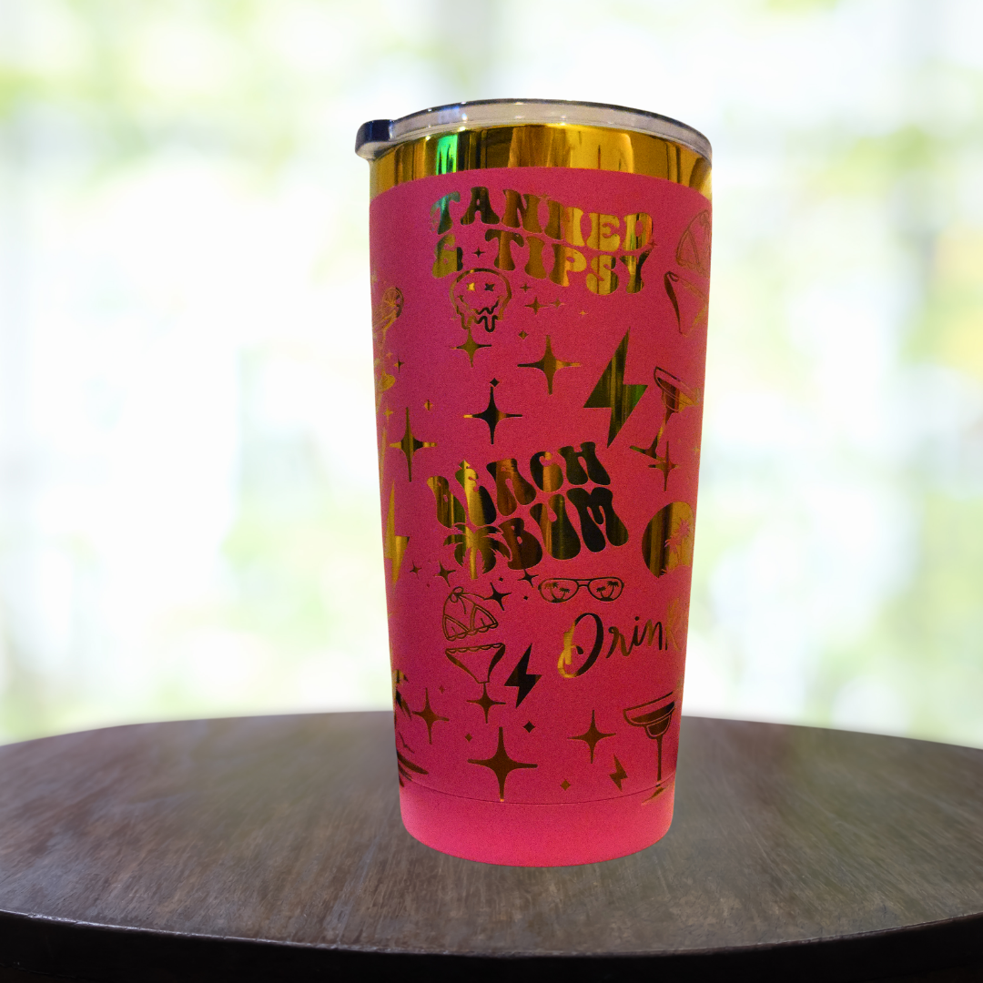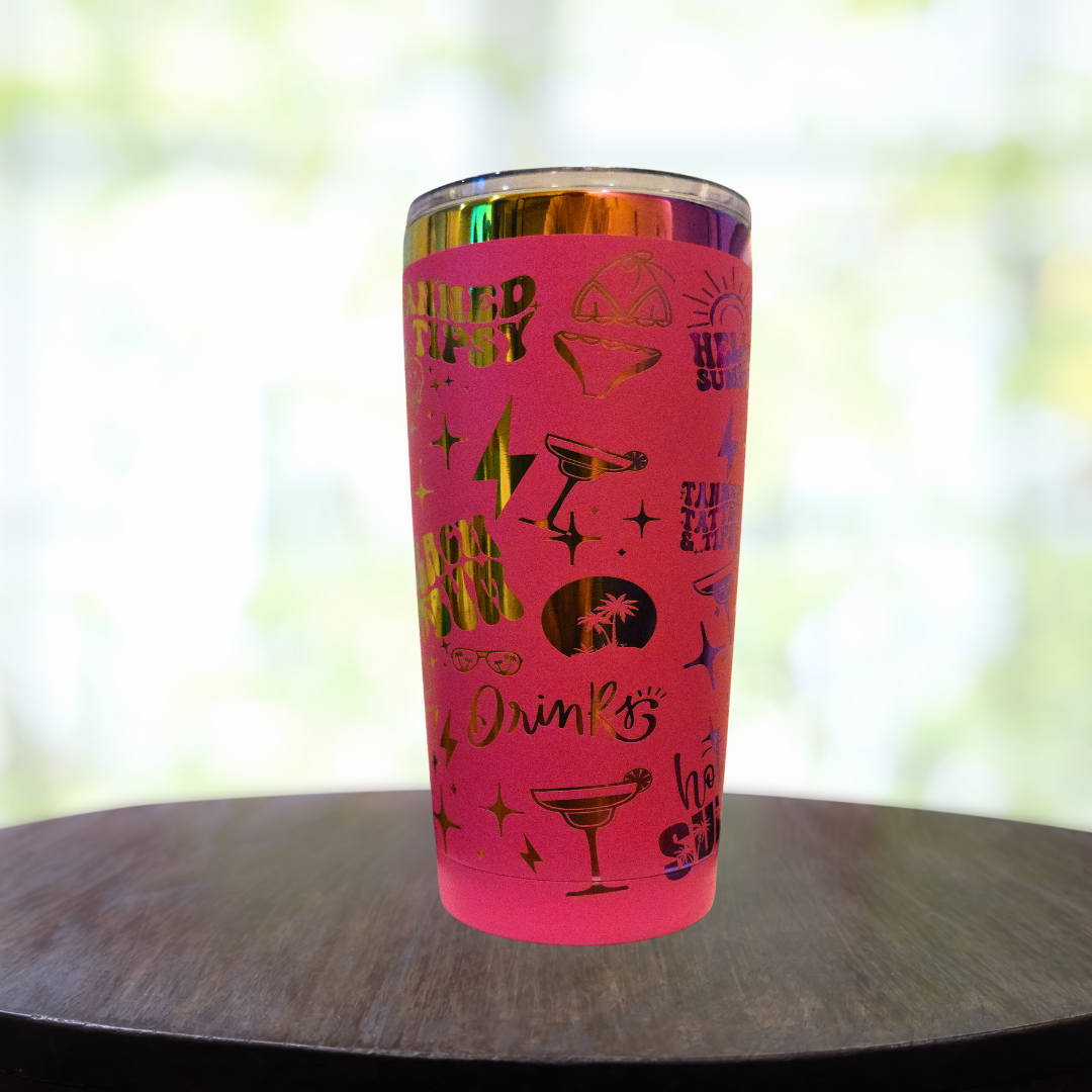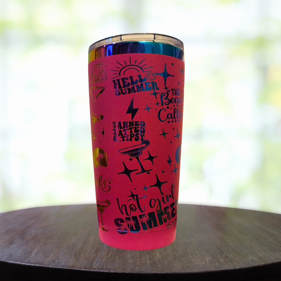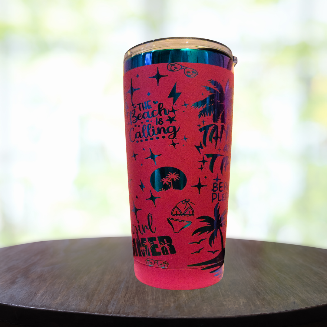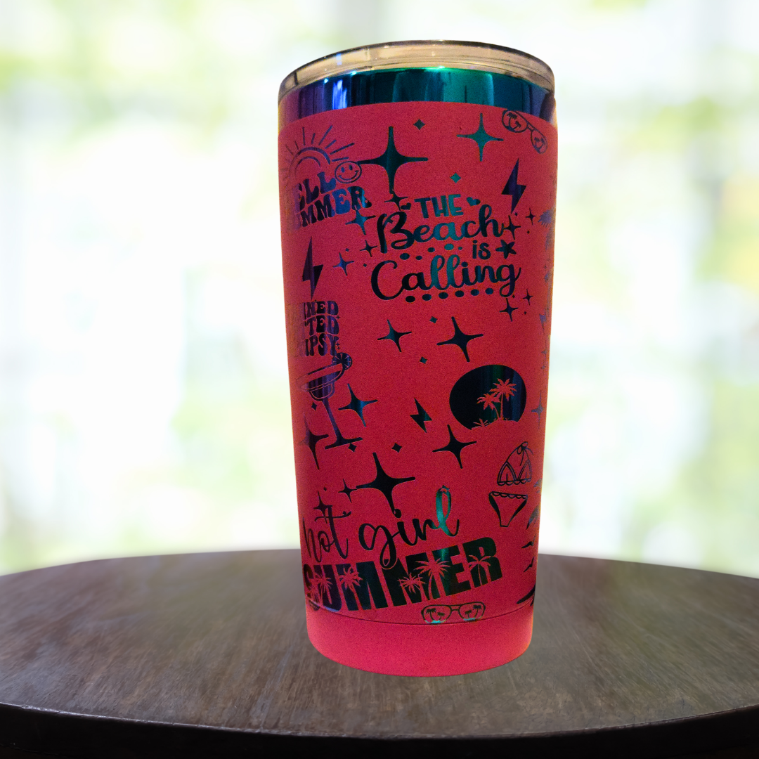 Introducing the 20oz Rainbow Summer Vibes Tumbler, your perfect companion for sunny days. This vibrant tumbler captures the essence of summer with its eye-catching rainbow design, making it a stylish addition to your outdoor adventures.