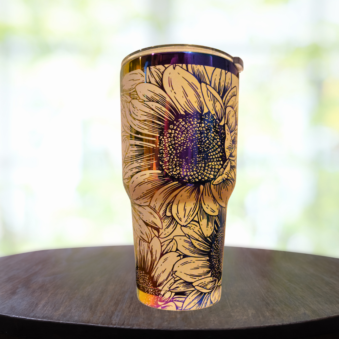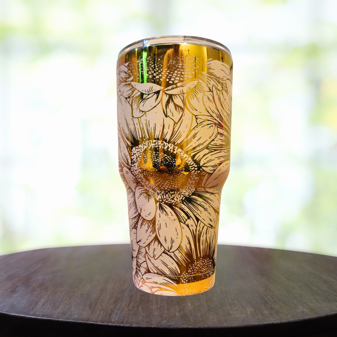 Brighten your day with our Sunflower 30oz tumbler. This beautifully designed tumbler features a cheerful sunflower pattern that adds a touch of nature to your daily routine.