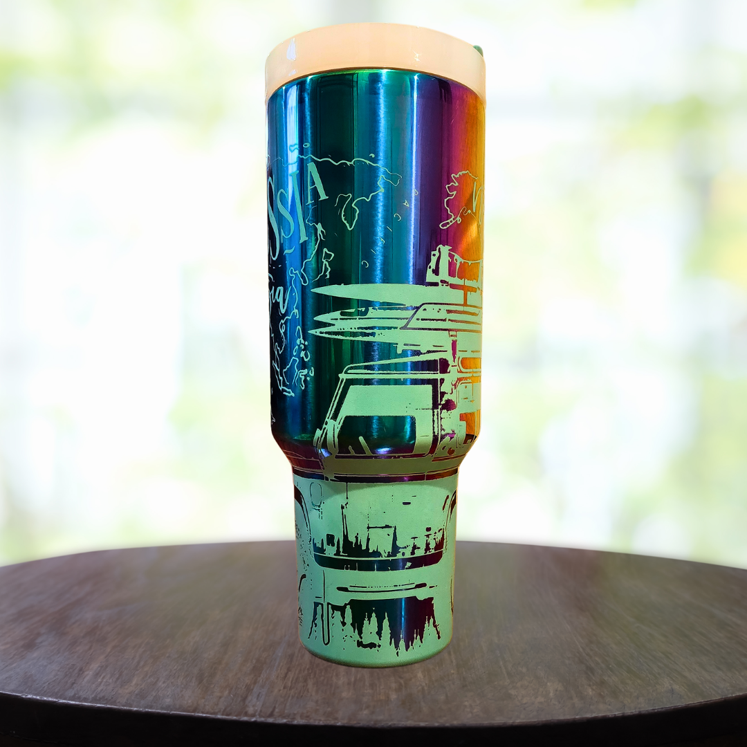 Keep your wanderlust alive with our 40oz Travel Themed Tumbler. Designed for globetrotters and adventure seekers, this tumbler is the perfect companion for your journeys.