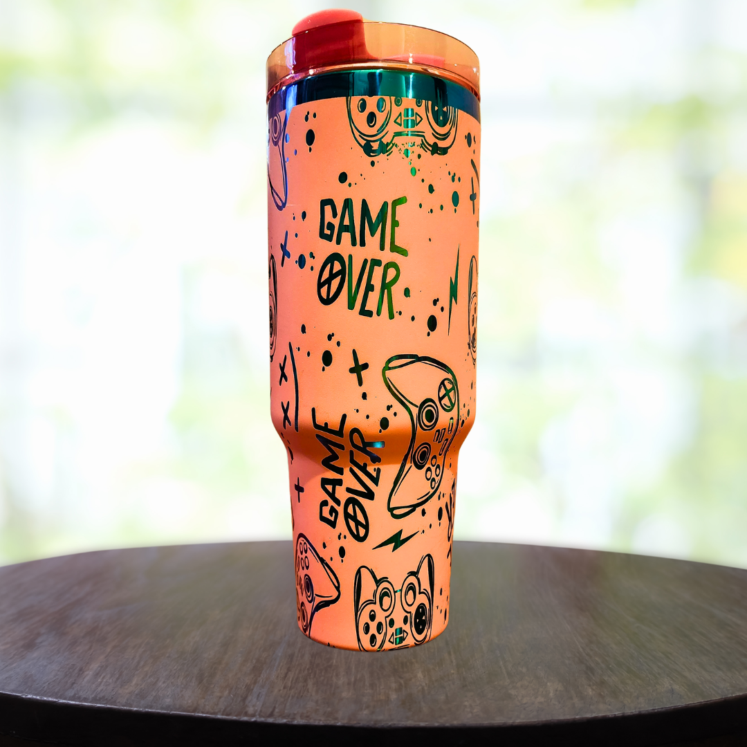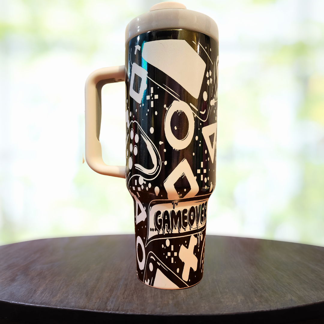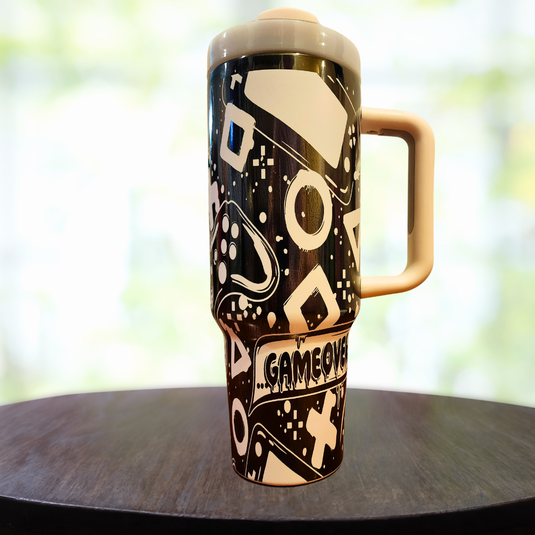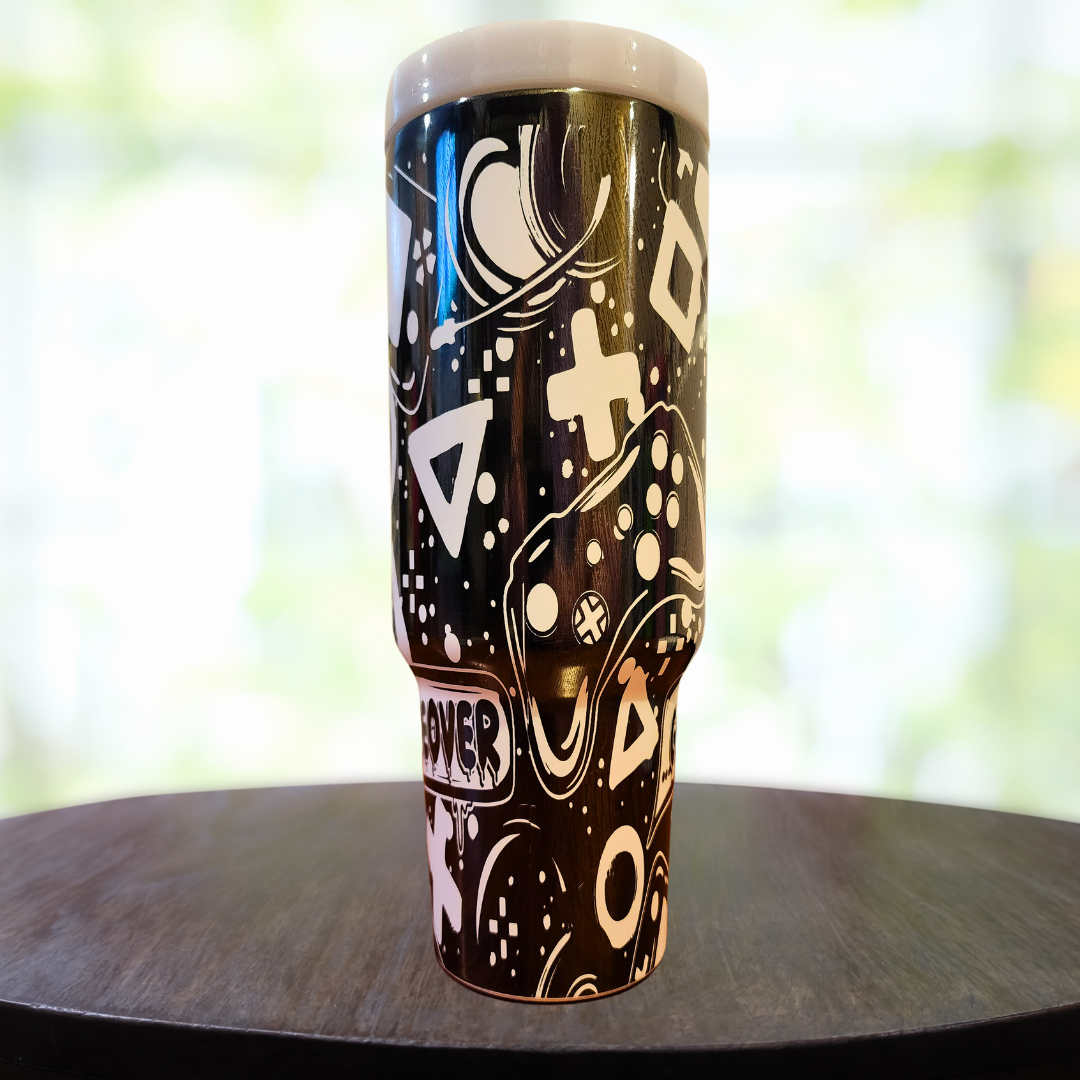 Crafted for comfort and convenience, its generous 40oz capacity ensures you stay hydrated while conquering virtual worlds. With a sleek design that showcases your passion for gaming, this tumbler is a must-have accessory for any dedicated player. Level up your hydration game today!