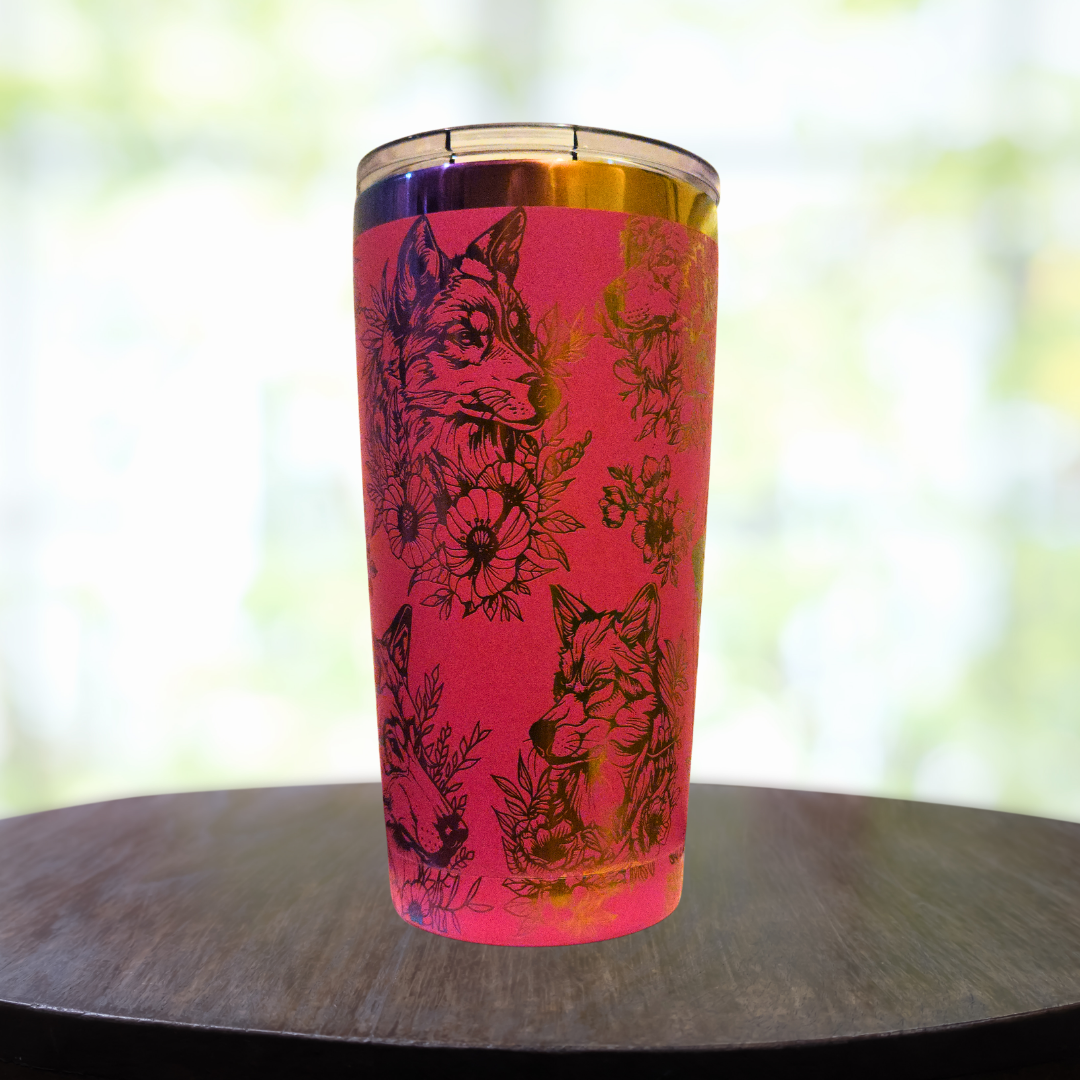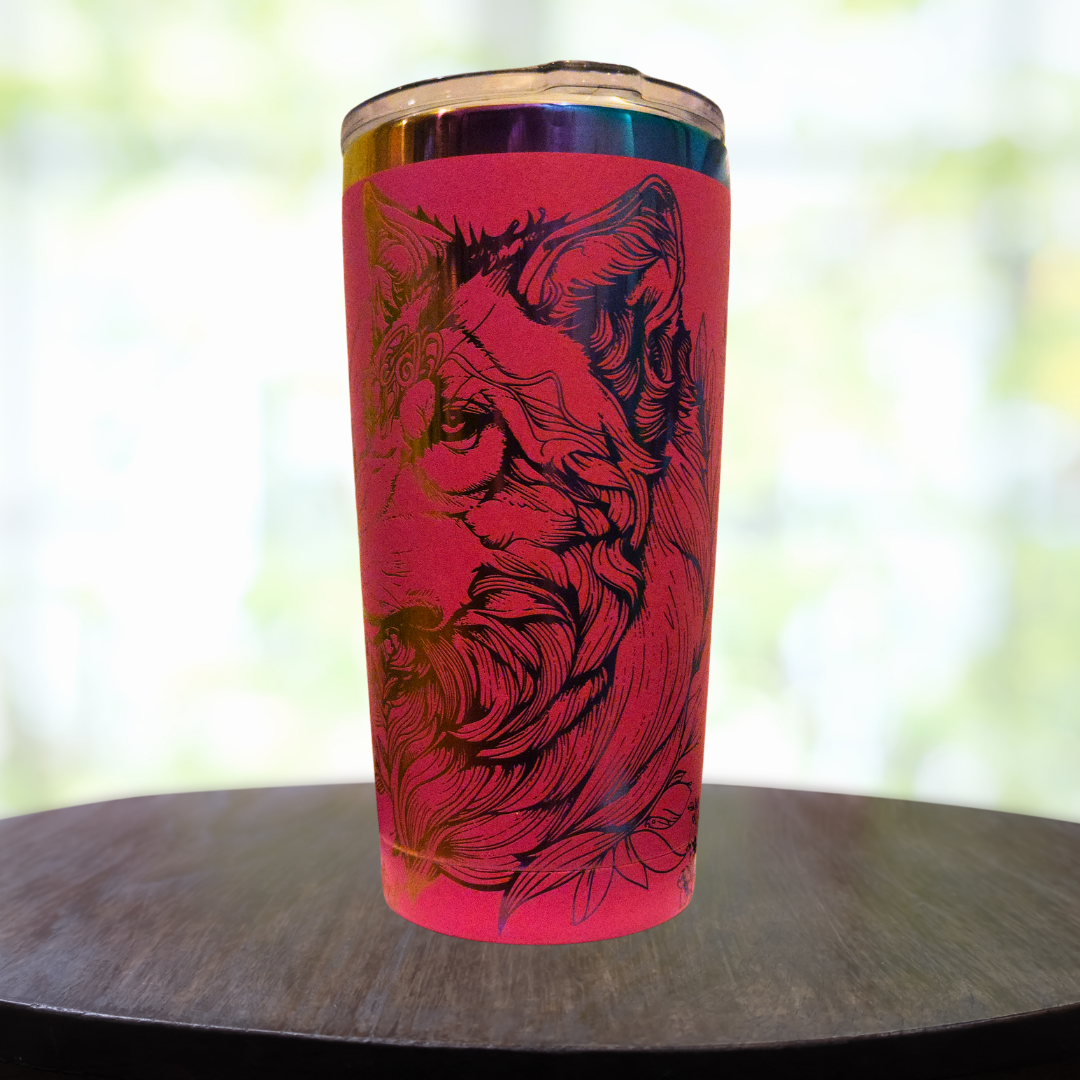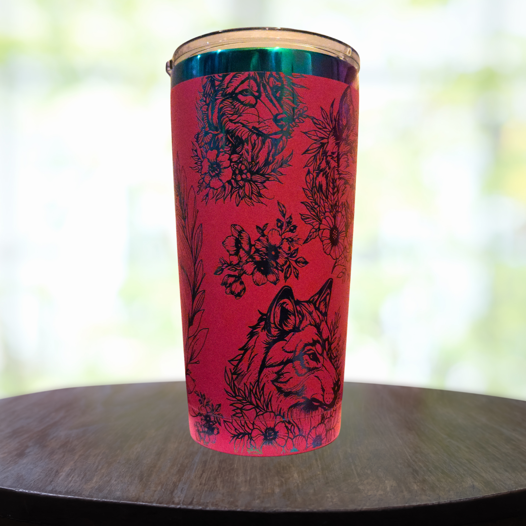 Elevate your hydration game and embrace the call of the wild with this stunning 20oz Wolf Tumbler.